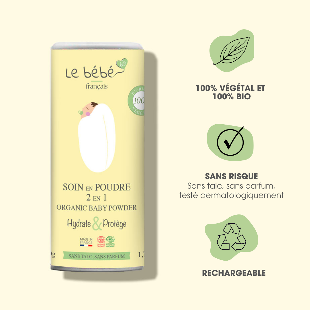 Soin en Poudre 2 en 1 pour Bébé : L’alternative 100% végétale au talc !